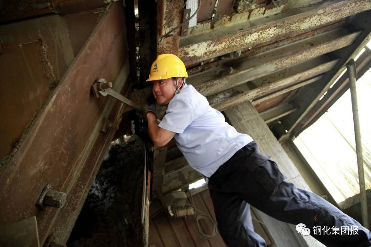 下了皮帶廊,走到主井礦倉下,老郭自豪地指著頭頂上方:“8個漏斗,過去維修和更換都是委外,現(xiàn)在都是我?guī)俗约焊伞《嗌馘X我不曉得,自己的事情就該自己干,能省一個是一個!”說到興奮時,他還掏出手機(jī)上圖片給我講2個月前他們打的一場硬仗:主井35米礦倉漏斗因礦石提運(yùn)沖擊導(dǎo)致四邊混凝土嚴(yán)重磨損,礦業(yè)公司聽取老郭的建議,準(zhǔn)備為漏斗四邊安裝4塊鋼板以保護(hù)受損的混凝土墻體。為了最大限度減少對主井出礦的影響,只給他們48小時的停產(chǎn)時間。頭一次接這大活的老郭也沒犯怵,提前準(zhǔn)備好鋼板、木條等材料,將8名維修工分成3班,白班和小夜班清漏斗、制作安裝安全護(hù)板、鑲嵌鋼板,大夜班專門焊接鋼板。啃了2天的方便面,提前2小時完工將漏斗交付使用……